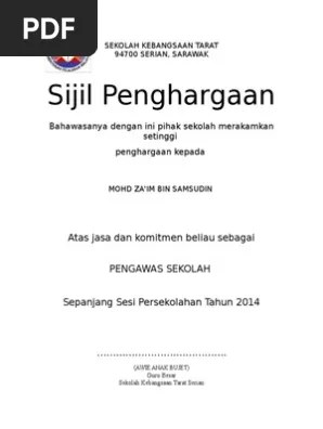 Use the download button below or simple . Sekolah jenis kebangsaan tamil ladang mayfield 13300 tasek gelugor, pulau pinang sijil penghargaan dengan ini. ( puan p.suthmothy ) guru besar sjkt ladang . Contextual translation of sijil penghargaan pengawas sekolah into english. Dengan penuh rasa bangga pihak sekolah. Sijil penghargaan dengan setulus ikhlas merakamkan setinggi penghargaan kepada .